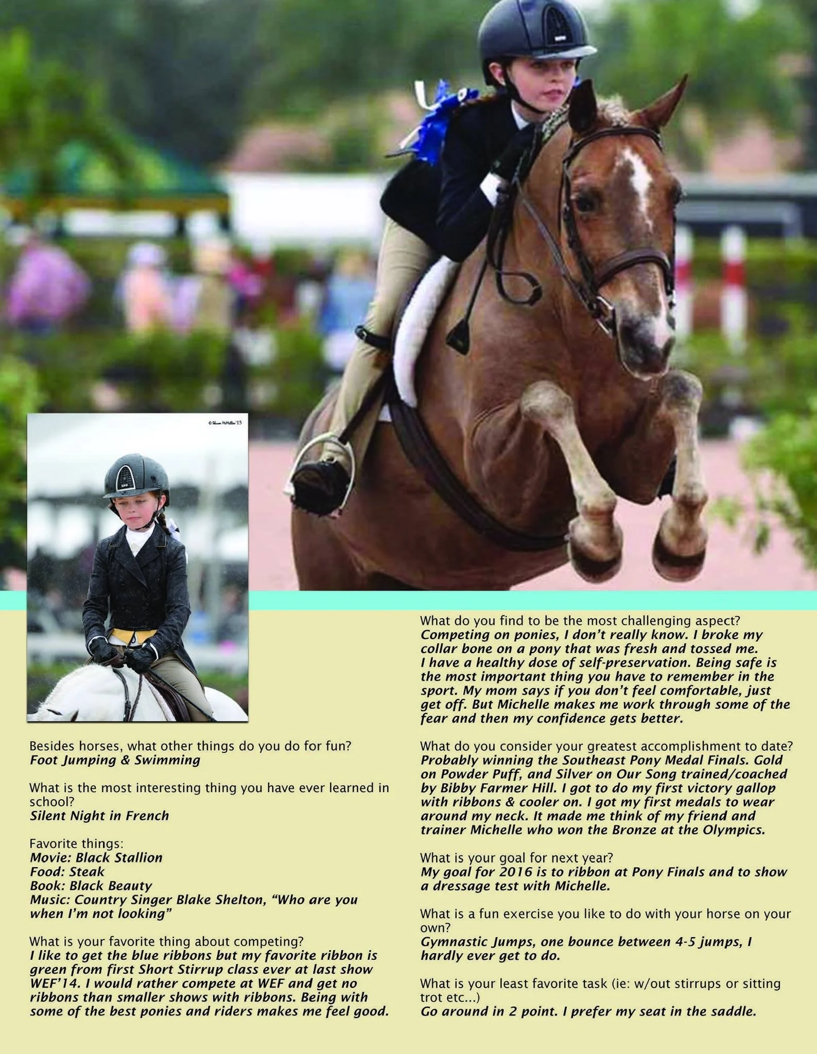 Devon Grand Champion, Reserve National Dressage PSG Open Champion, Maclay Regional Reserve Champion, 3rd Horse of the Year Zone 4 Medium JR/Amateur Jumper